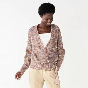 NINE WEST Knit Wrap Surplice Cardigan Sweater Boho Hippie Cabin multicolor