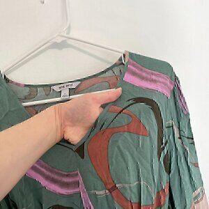 - green / lilac lavender purple / rust red ish / multi multicolor geo geometric swirl print v-neck long sleeve shift dress