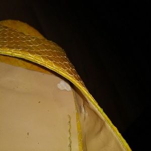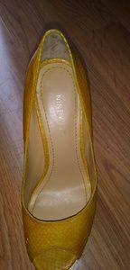 Mustard Yellow Leather Heels the last four pix shows some wear in the inside of the shoes. The heels are 4 inches. Worn a few times in great condiction
