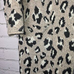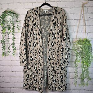 NINE WEST LONG ANIMAL PRINT OPEN FRONT CARDIGAN OVERSIZED BEIGE AND GRAY LARGE