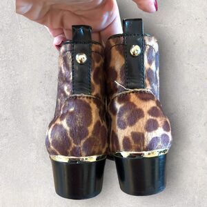 Nine West Platform Boots Size 7M Animal Print Gold Trim. Faux fur. Black stretchy piece on inside for ease in putting on. 1.5" heel.