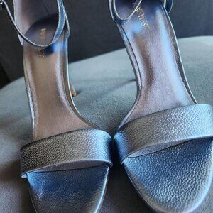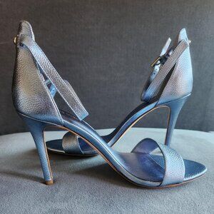 NINE WEST "Mana" Light Blue Metallic Pebbled Leather Stiletto Sandal. Size 9.