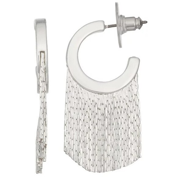NINE WEST Mod/Contemporary Shiny Silver Fringe Chains Hoop Earrings**NEW!
