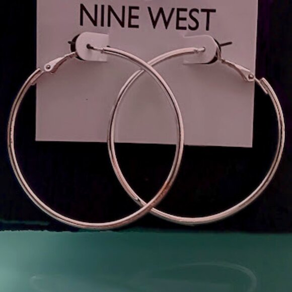 ONLY **1** PAIR LEFT!!! NEW WITH TAG!!! NINE WEST Mod/Contemporary Silver Shiny Smooth 2" Hoop Earrings**Shiny Silver Hoops have a Smooth Texture! Pretty Hoops to Jazz Up your Look!**Earrings are 2" Tall**NEW ON HANG TAG!