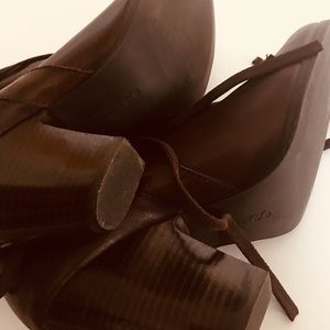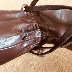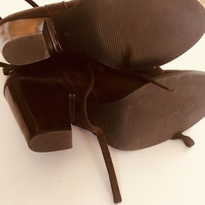 Start fall season off on the right foot with nine & co by Nine West jjmarissa ankle / calf boots. Dark brown leather upper manmade sole. Pull on ankle boots . Elastic at ankle with suede ties. Heels appropriate 3 1/2
