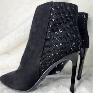 NINE WEST NWT Booties Boots Woman's Heels Suede Black Stone authentic designer