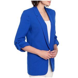 NINE WEST Open Front Roll Tab Sleeve Blazer Jacket Blue sz M Women's