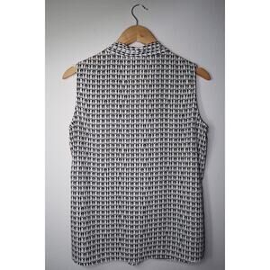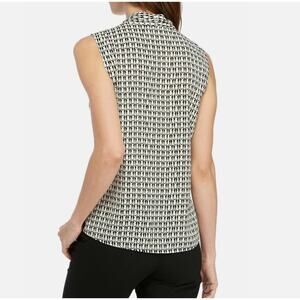 Chic and playful, this sleeveless blouse features an allover black-&-white penguin pattern with a flattering V-neckline & front pleat detail. Lightweight and versatile, it’s perfect for layering under blazers or wearing solo w/ jeans for a casual-chic look.