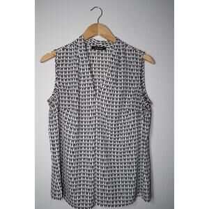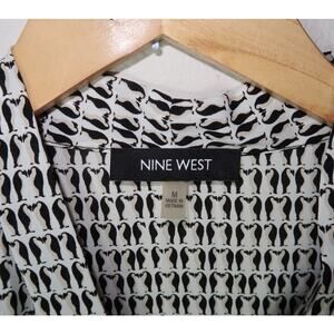 NINE WEST PENGUIN PLEATED FRONT BEIGE BLACK CAREER V-NECK BLOUSE MEDIUM