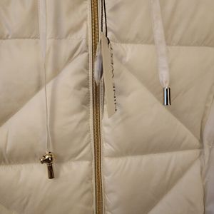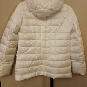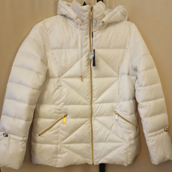 Lightweight (but puffy) puffer jacket. Will definitely keep you warm. Bright white in color. Has gold accents. 22 inches across chest and 27 inches long. Its new with tags still on. OPEN TO OFFERS.