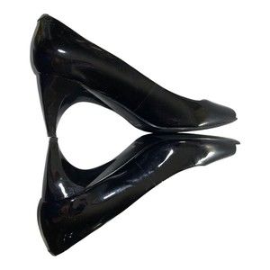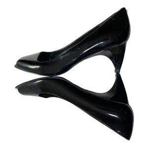 NINE WEST Pumps Mazzo Black Patent Leather Peep Toe Heels Women's 6M EUC
