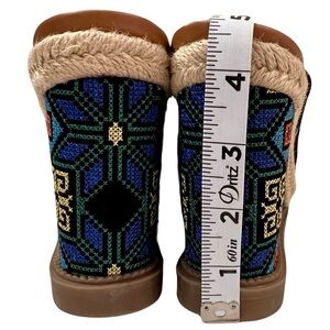 Gorgeous and very hard to find colorful wedges with a Scandinavian style pattern on these heels.