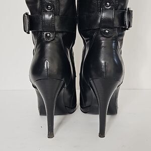 NINE WEST Reindeero Black Leather Strap Heel Zipper Women's Boot Size 6