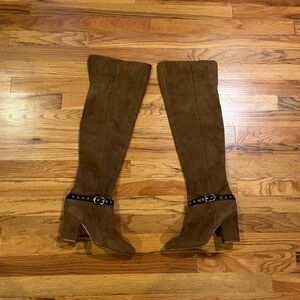 NINE WEST Sandro Thigh High Over the Knee Leather Suede Boots Block Heel