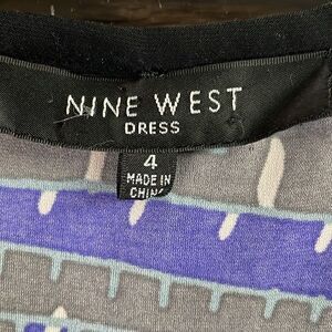 NINE WEST Short Elastic Sleeve Vneck Knotted Ruched Bodice Dress Size 4 Blue