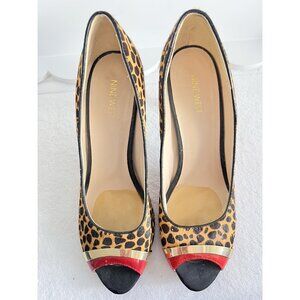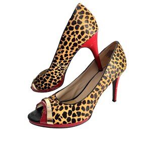 NINE WEST Size 11 Women Shoes Glamrgirlo Leopard Red Calf Hair Open Toe Heel