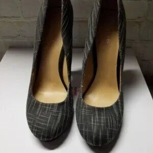 NINE WEST Smoochmeo gray and white plaid wedges pumps size 10