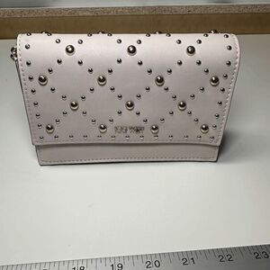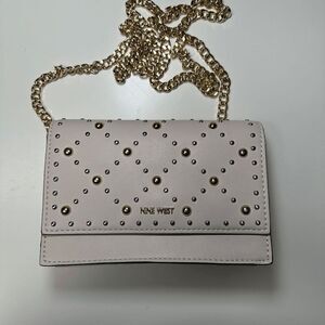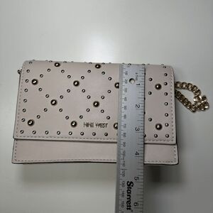 Keywords: Nine West, studded, wallet, clutch, chain strap, beige, small purse, fashion accessory, evening bag, crossbody, designer, embellished
