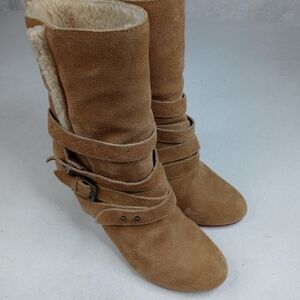 NINE WEST TAN SUEDE HEELED LINED 'CRUZAL1' BOOTS WOMENS SIZE 6.5. 306.1pm