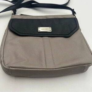 NINE WEST Taupe & Black Crossbody Handbag Shoulder Bag Adjustable Strap …