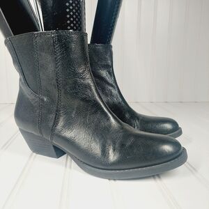 NINE WEST VINTAGE AMERICA Vasloane Black Leather Side Zip Ankle Boots E187