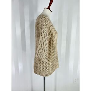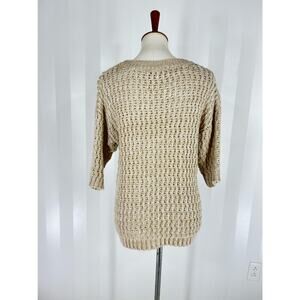 NINE WEST Vintage America Collection Beige Open Knit Short Sleeve Sweater Sz S