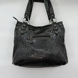 NINE WEST Vintage Black Pebbled Shoulder Bag Purse Faux Leather