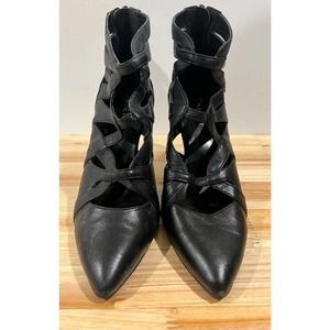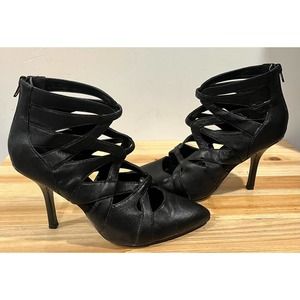 NINE WEST WOMEN'S BLACK LEATHER PUMP HEELS SHOES SIZE 8M