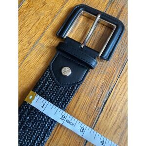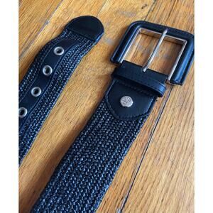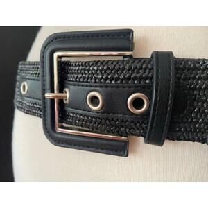 NINE WEST Wide Black Stretch Raffia Waist Belt size M/L. Featuring faux leather trim,