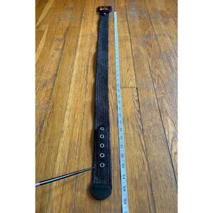 stretch strap, oversized buckle, logo embossed rivet and grommet punch holes.