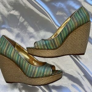NINE WEST Willow Multi Color Fabric Woven Peep Toe Wedges Size 8.5