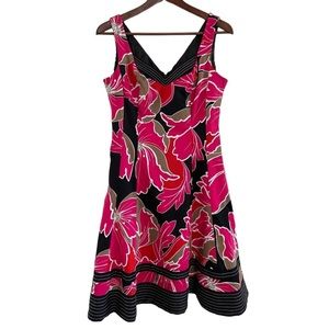 NINE WEST Woman’s Sleeveless Tropical Print with Ribbed Trim Sweetheart Neck 8