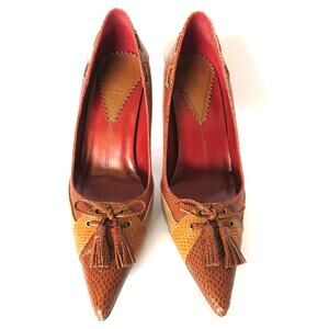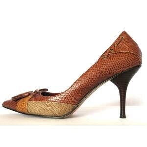 NINE WEST Women 7.5 Tan Brown Snake Embossed Leather High Heeled Pumps Shoes