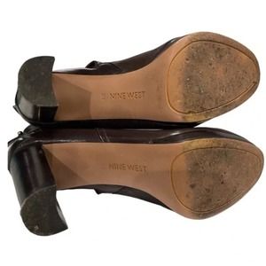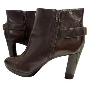 NINE WEST Women’s Brown Leather Ankle Block Heeled Boots Booties Sz 8M