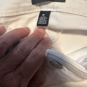 Color White is a clean bright White with fray hem, made in a nice stretch twill fabric that's never restricting