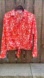 NINE WEST Women’s Orange White Floral Print Blouse Shirt Front Tie Size Large