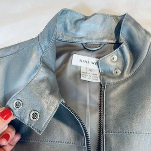 NINE WEST Women's Silver Real Leather Full Zip up Jacket Size 10