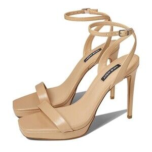 NINE WEST Zadie Stiletto heel Square Toe Ankle-Strap Sandals in Beige size 7 NWT