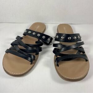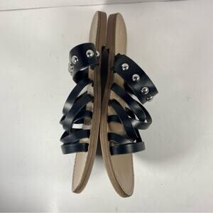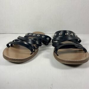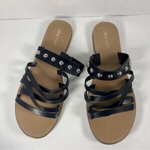 NINE WEST black strappy leather silver studded sandals Moto bikercore grunge