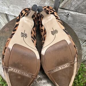 NINE WEST brown and tan leather leopard print pumps heels #animalprint
