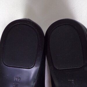 FOR SERENE COMFORT COMBINED WITH SOPHISTICATED ELEGANCE, IT’S HARD TO BEAT BALLET FLATS. THIS PRETTY PAIR BY NINE WEST, SIZE 6M, MODEL NAME NW7SPLENDOR is gently pre-owned, in excellent condition, with slight wear and scuffing on the soles and heel tops (pictures #15 & 16 ), but otherwise free of defects, damage, or signs of wear. They have soft, cushioned insoles for your walking (or standing-around) comfort and decorative faux (I think) patent-leather straps across the upper front. The uppers are a combination of leather and synthetic material (I think the synthetic is the aforementioned decorative straps), other materials synthetic. The stated size is 6M, but prospective buyers are encouraged to compare the measurements with those of shoes that they know fit well prior to purchase. Inside measurements are: length, heel to toe 9 3/8”; widest point 2.75”; narrowest point 1.5”. Heel height is 3/8”.
