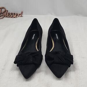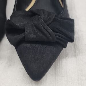 ●NINE WEST●FAVS FLATS BLACK POINTED-TOE GOLD TRIM BOW ON TOE BOX LADIES 8 NWOB
