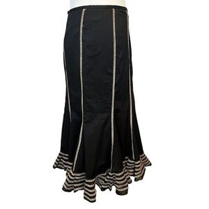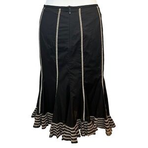 Black Cotton Poplin w/ Multicolor Overstitching Paneled Trumpet Style Skirt Nine West