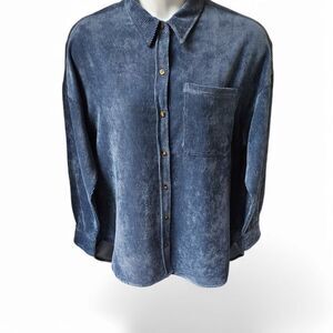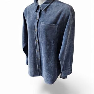 NINE. EIGHT NEW YORK Women's Sky Blue LongSleeve Cordaroy Ribbed button Up Tunic