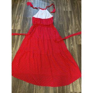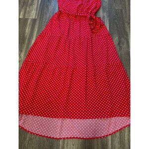 NINE.EIGHT WOMENS PLUS SIZE HELTER MAXI DRESS XXL POLKA DOT RED BELTED