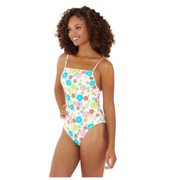 Get ready to turn heads at the beach or pool with this stunning NINETY NINE Degrees 90's Y2K Ditzy Floral One Piece Low Open Back Swimsuit in size Small. The swimsuit features a square neckline and spaghetti straps, with a tie-back accent that adds a touch of elegance to the overall design. The garment is made of a comfortable blend of polyester, nylon, and spandex, ensuring a stretchy and flexible fit that moves with you.