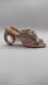 These fashionable sandals sport a glossy knotted upper with a self-covered abstract-shaped heel.