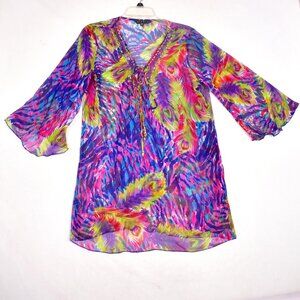 NINETY Women's Multi-Color Sheer Swim Coverup Size Small