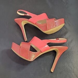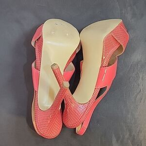 NINE WEST HIGH HEEL STILETTOS STRAPPY ANKLE STRAP OPEN TOE SANDAL SIZE 71/2M COLOR PINK MADE WITH NW7FAIRGAME MAN MADE UPPER MAN MADE LINING BALANCE MAN MADE HEEL HEIGHT MEASUREMENTS APPROX 5"INCHED THIS ITEMS IS PRE-OWNED EXCELLENT CONDITION WITH ONLY LIGHT SIGNS OF WEAR IF ANY CHECK THE PICTURES