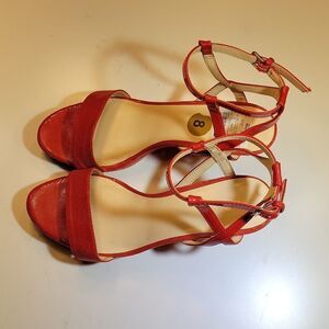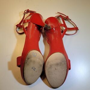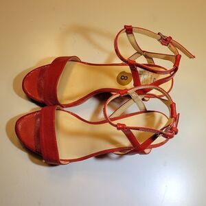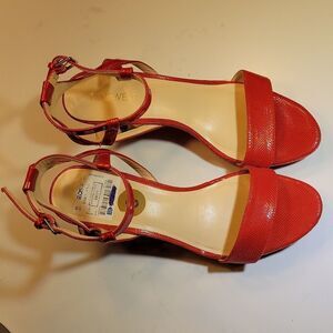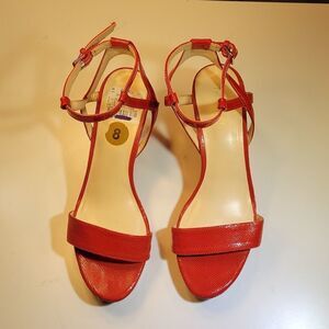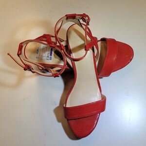 NINE WEST JAZZGIRL OPEN TOE ANKLE STRAP AND BUCKLE CLOSURE HEEL SANDAL SIZE 8 COLOR RED MADE WITH MAN MADE &TEXTILE UPPER MAN MADE LINING BALANCE MANMADE HEEL HEIGHT MEASUREMENTS APPROX 3"INCHES PRE-OWNED EXCELLENT CONDITION WITH ONLY LIGHT SIGNS OF WEAR IF ANY CHECK THE PICTURES (NO TRADES REASONABLE OFFERS PLEASE BUNDLE FOR BETTER DEALS)THE PICTURES IS JUST A MODEL TO SHOW HOW THE SHOE LOOK ON CHECK THE PICTURES)